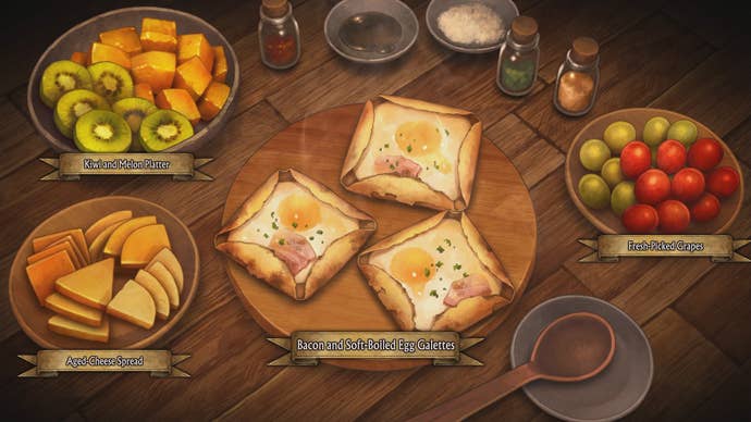 It’s very traditional medieval fantasy, but told in Vanillaware’s truly unique and unmistakable style: a mixture of pulp and pomp that does so much to evoke the spirit of epic adventure by blending ethereal and dreamy atmosphere with hand-drawn environments, heavy breathing, and character designs with one foot in Frank Frazetta and the other in the dark corners of DeviantArt. No one does a shimmering cape or a plateful of fried eggs better.